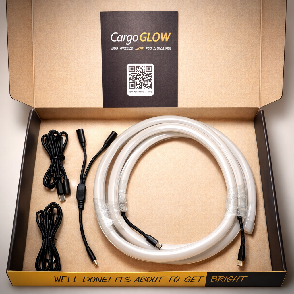 CargoGLOW ist der perfekte Begleiter, um deine Cargo-Bike-Abenteuer zu beleuchten! Die LED Stripes sind superhell, flexibel, wasserdicht und erzeugen ein neutrales Licht (4000k), das dank des eingebauten Diffusors nicht blendet!